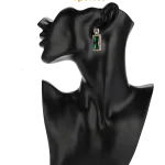 Make a bold statement with these emerald green drop earrings. Designed with a vibrant rectangular gemstone and a shimmering diamond-cut stud top, these earrings are set in a luxurious gold-tone finish. Ideal for adding a touch of royalty to your outfit, they are perfect for festive occasions and evening wear.