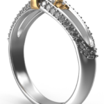 A bold pavé-set dome with a woven, lattice-like surface, interrupted by sharp square stones for contrast. Confident and striking, Axiom is designed to anchor a look rather than blend in.